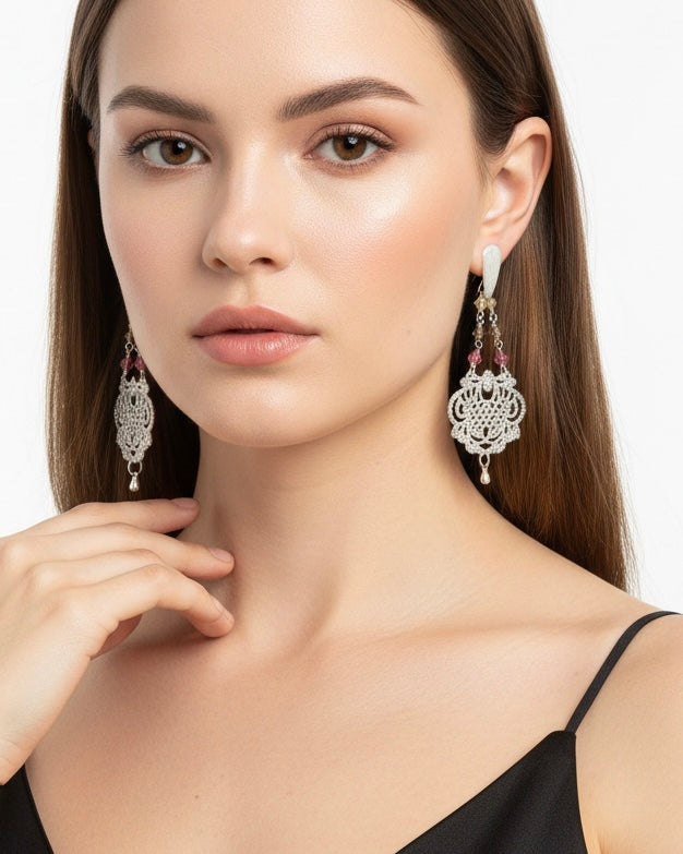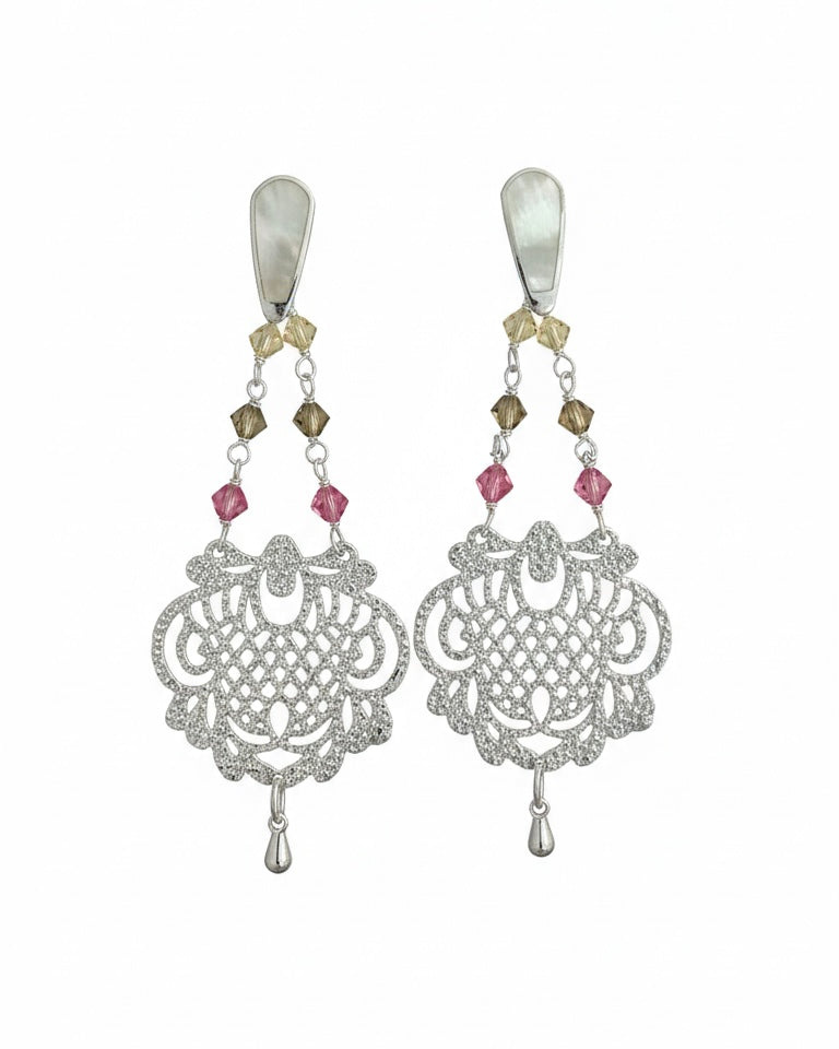 Hermoso mándala bañado en plata 925 diseñado con cristales de swarovski, muy livianos y femeninos