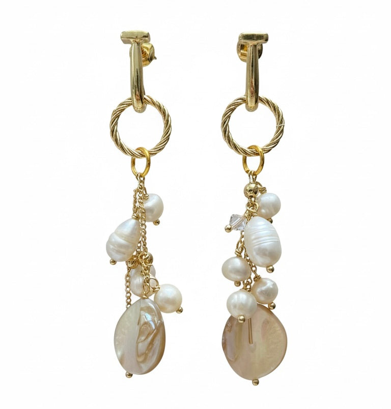 Bellísimos estos aros diseñados con concha de nácar y perlas de Río.