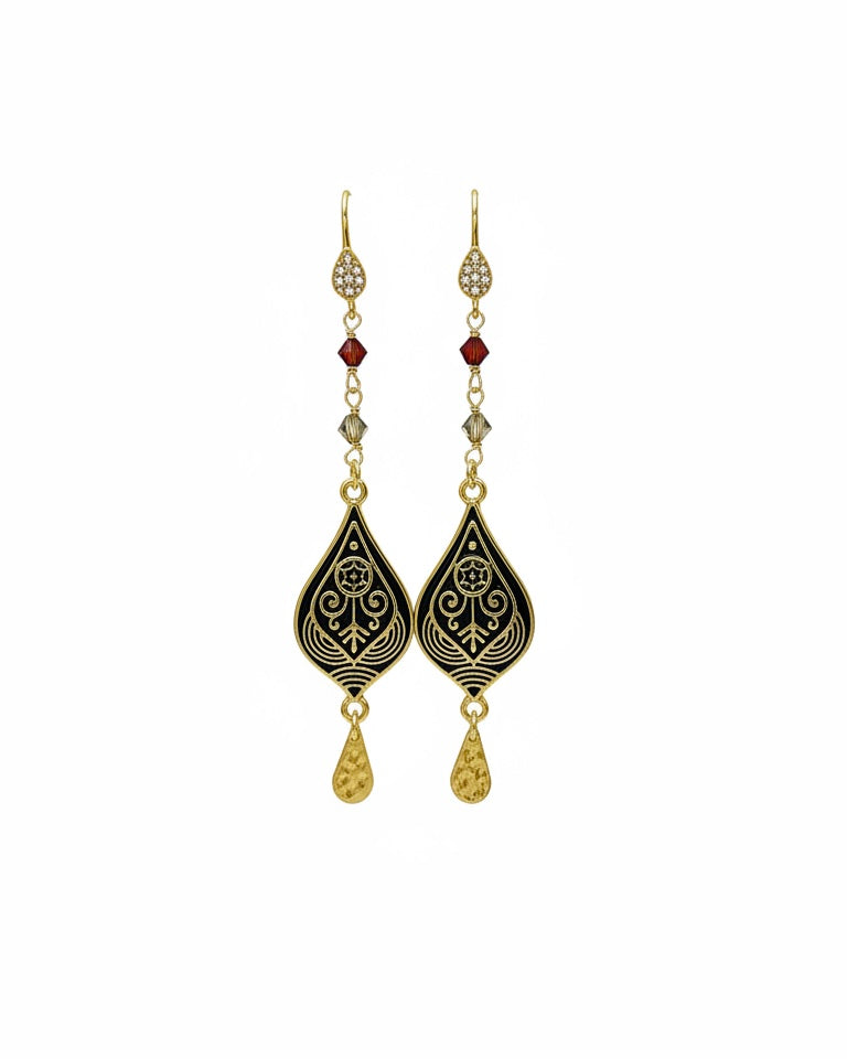 Hermoso mandala esmaltado en negro con dorado, y combinado con cristales de Swarovski.