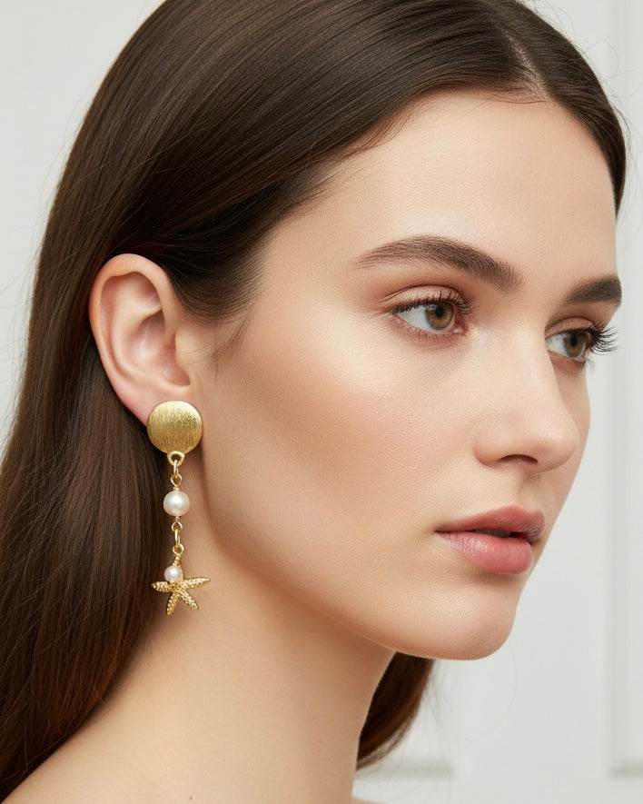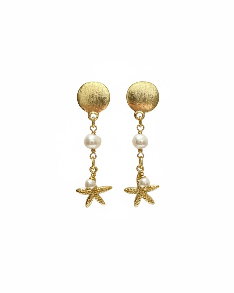 Hermoso diseño muy marino, con perlas de río y estrella de mar, todo bañado en oro 18k.