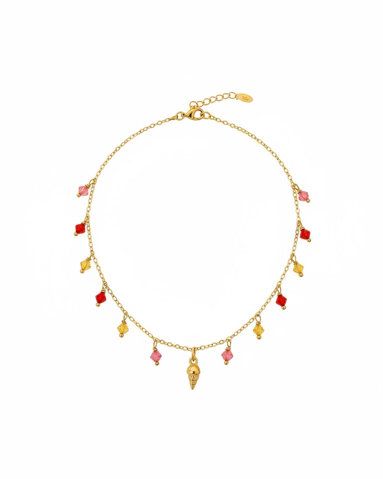 Hermosa tobillera hecha a mano y diseñada con cristales de Swarovski en colores, fucsia, naranjo y amarillos.